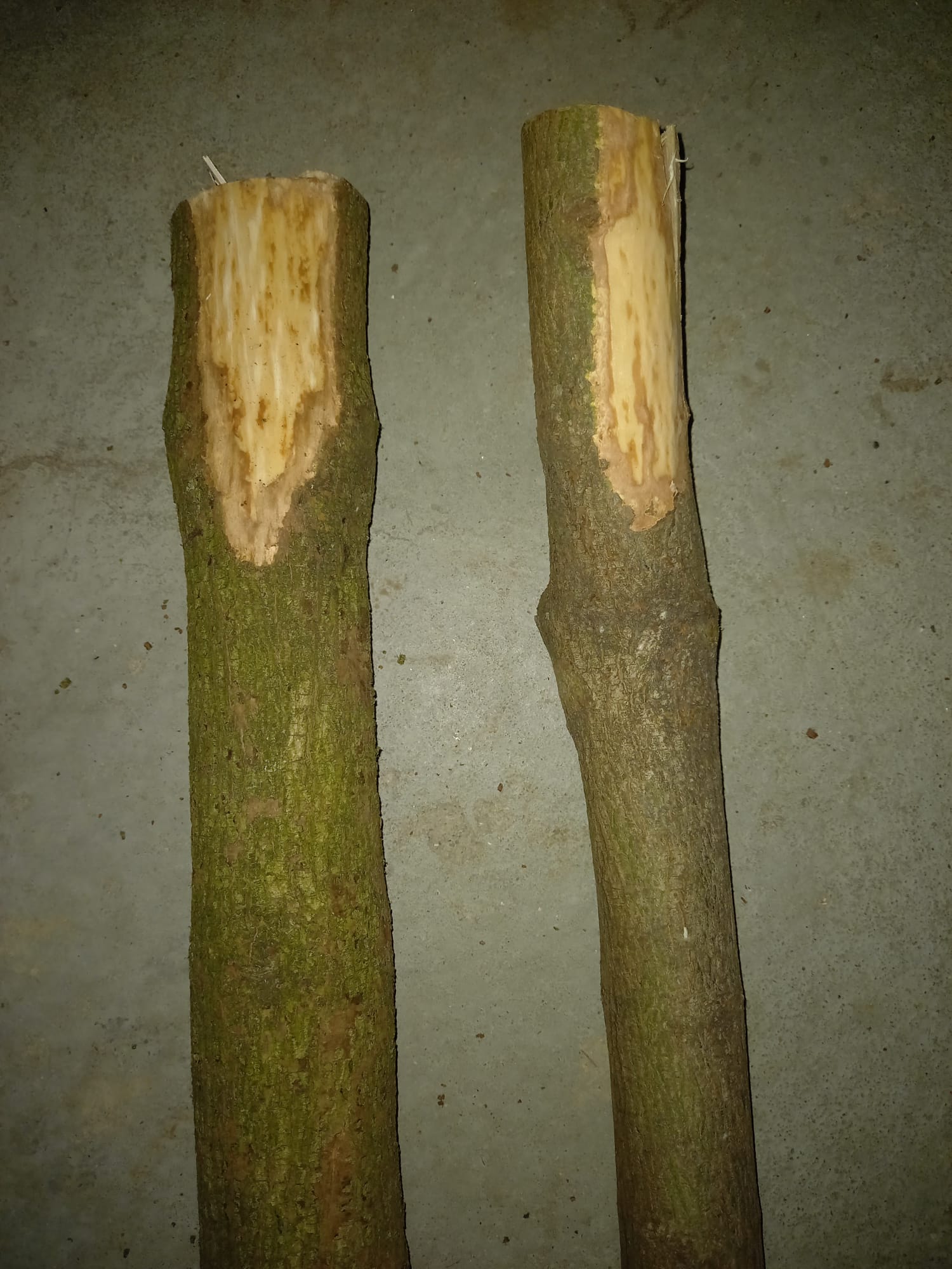 Die Rinde sah gleich aus, allerdings gab es hier erst in der obersten Krone Verzweigungen (kennt man von Hartriegel eigentlich nicht). Ich Zeige zu den 2 Stücken heute Abend ein Bild. Vom Geruch her haben sie auf mich auch wie Hartriegel gewirkt.