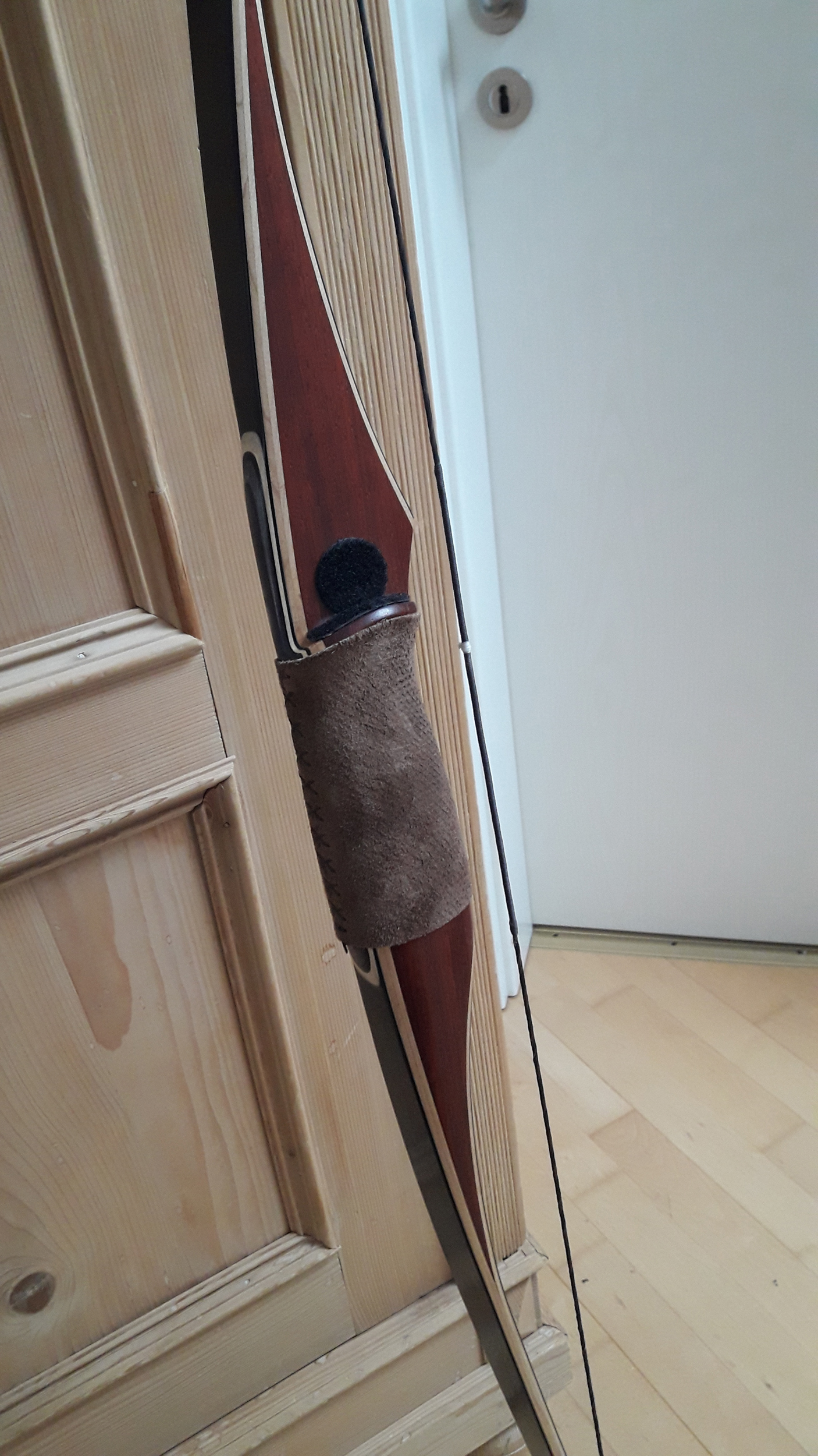 Sehne hier ist etwas zu lang (alte Sehne kürzer geknotet zum tillern) und den Griff hab ich in der Aufteilung irgendwie versiebt. Arrowpass sitz viel zu hoch... :-X