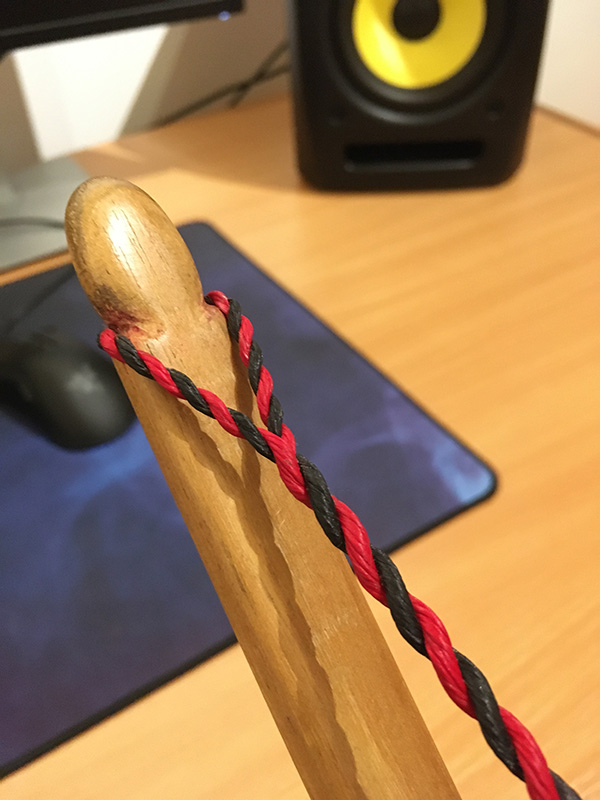 Bogenbauer-Knoten an einem Ende funktioniert! Aber gleich das nächste Problem: Das andere Öhrchen ist für meinen Bogen irgendwie zu groß: