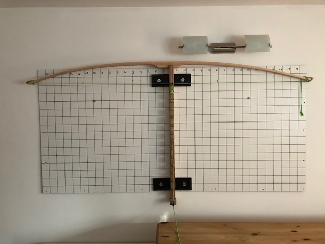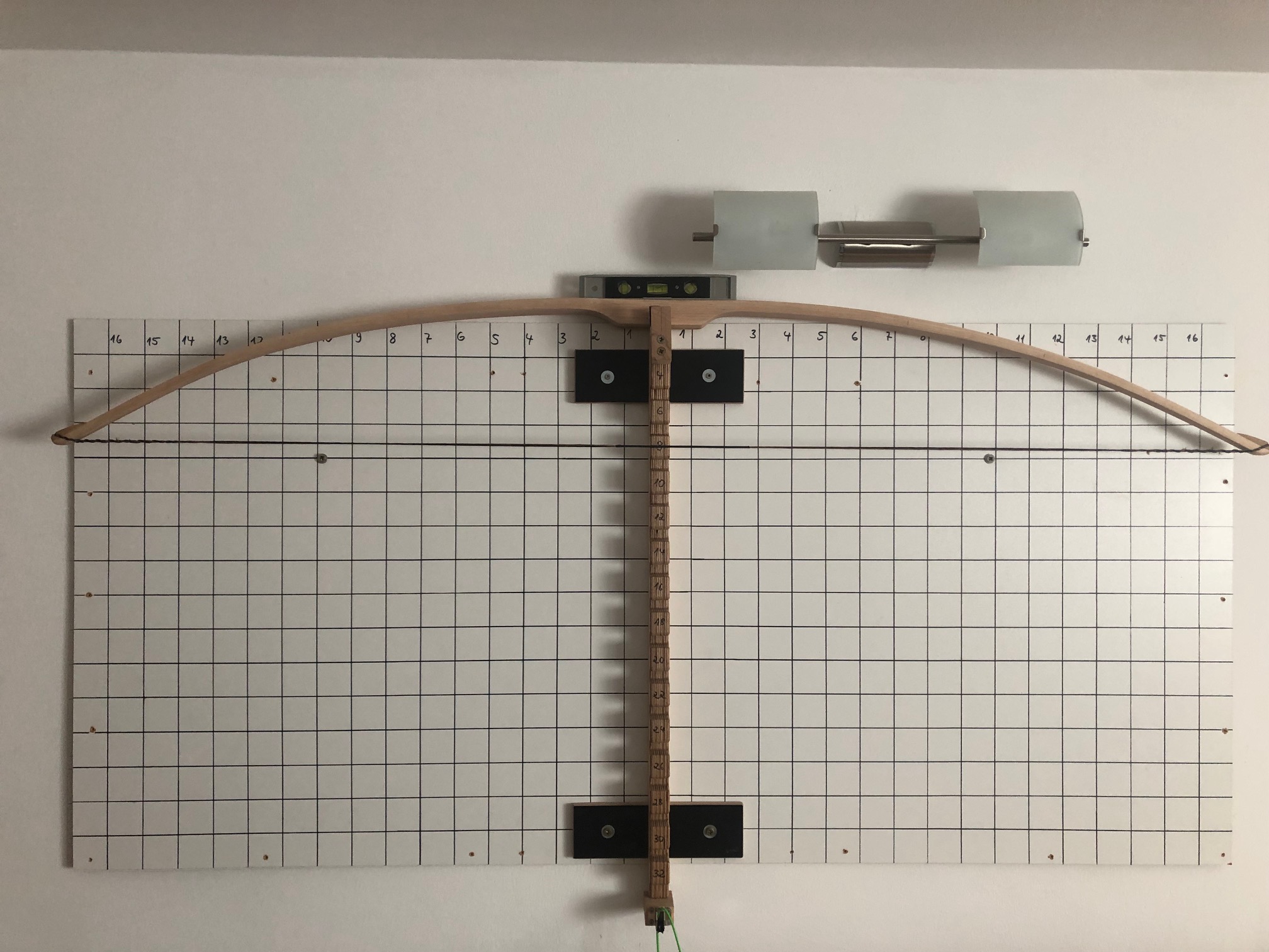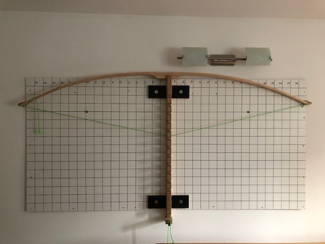 Werde erst einmal weitermachen, bis ich bei 28 Zoll Auszug angekommen bin und dann entscheiden, ob ich es dabei belasse oder die Enden flippe, um den Sehnenwinkel unter 90 Grad zu halten.