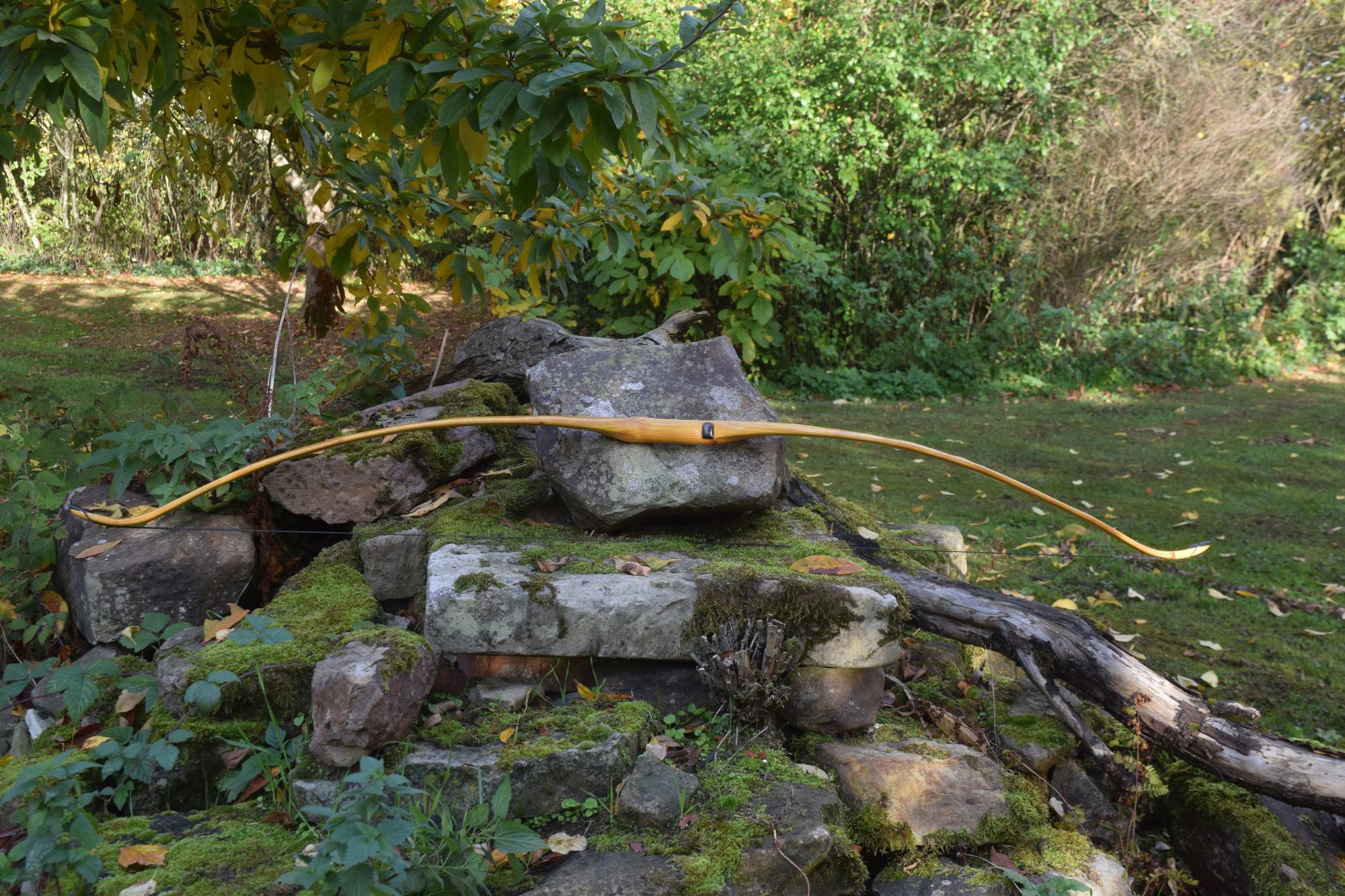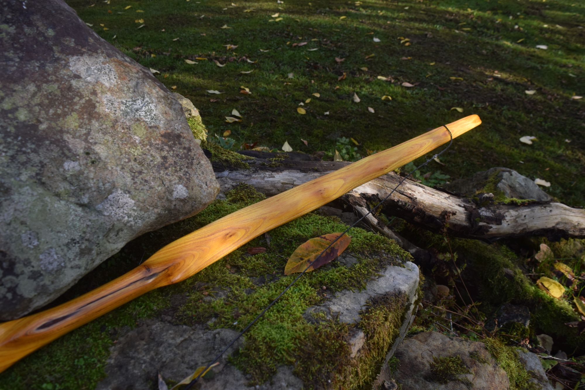 Hier der Ersatzbogen zum gestern vorgestellten Osage. Diesmal ein rötlicheres Osage. Der Rückenring ist der erste Kernholzring, der aber noch nicht an allen Stellen vollständig verkernt ist. Das ergibt ein sehr schönes Farbspiel und hält auch gut. Der Bogen ist ein bischen schwerer als der andere Osage, obwohl er minimal schmaler ist. Allgemein habe ich den Eindruck, dass das rote Osage ein bischen dichter ist. Die Performance ist ähnlich, subjektiv sind die aus dem gelben Osage minimal schneller. Rein der Optik wegen würde ich wohl aber immer das rötliche wählen