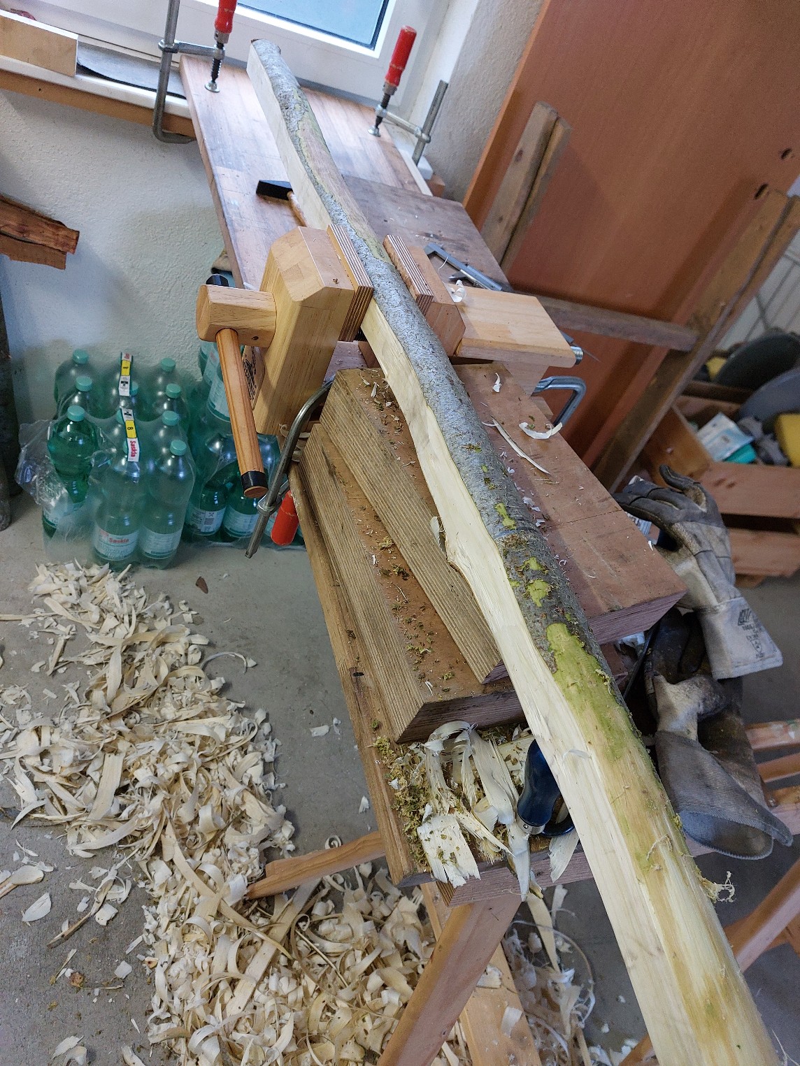Da kommt auch gleich mein selbstgebauter Schraubstock aus Rubberwood zum Einsatz...!