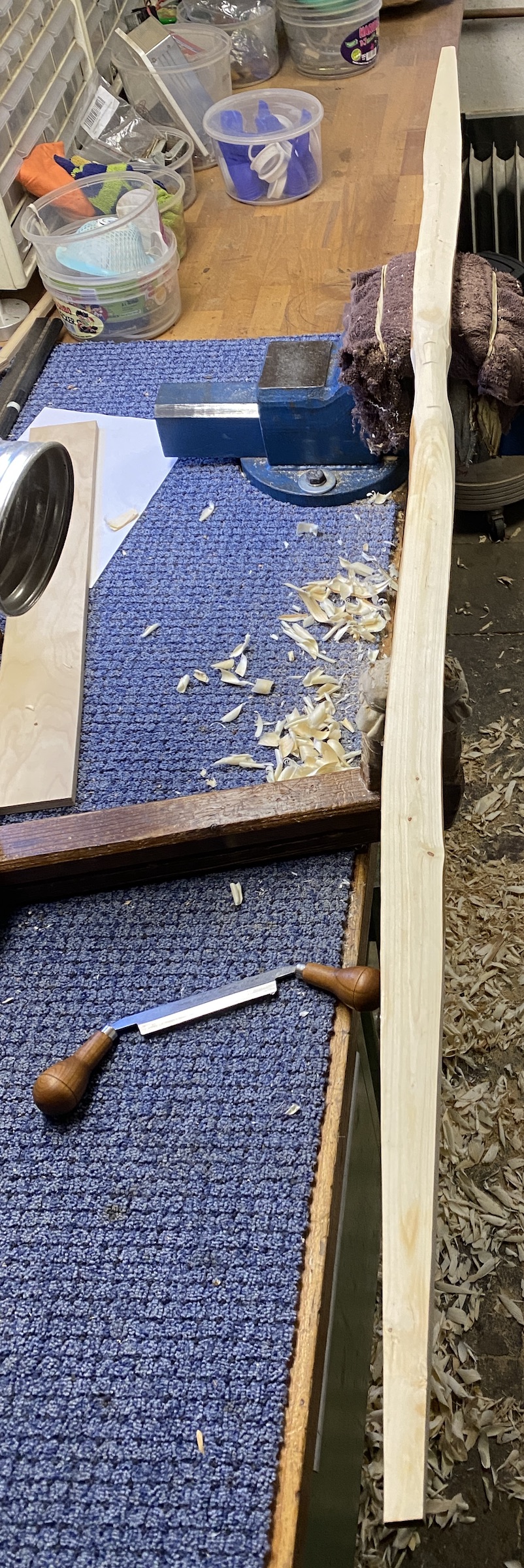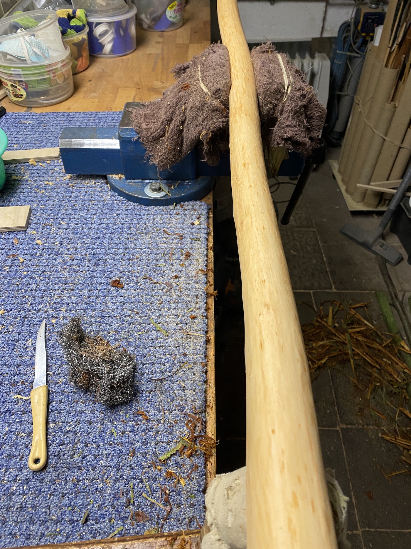 Erstmal auf 140cm gekürzt, schlanker gemacht und ein wenig Richtung Bogen getapert.