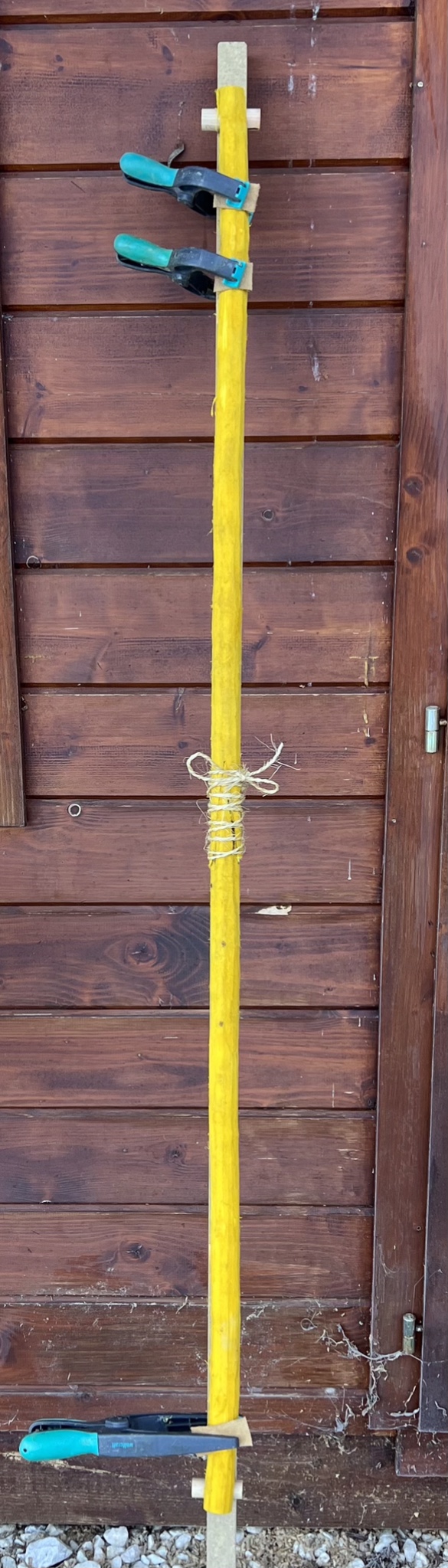 Meine Rose hat das Entrinden und Aufspalten rissfrei überstanden, alles schön mit Schellack eingeschmiert und jetzt hoffen. Ob ich 30 Pfund schaffe, wenn ich die zwei Hälften zusammenspleiße, weiß ich noch nicht. Sonst werden es kurze Indianerflitschen.