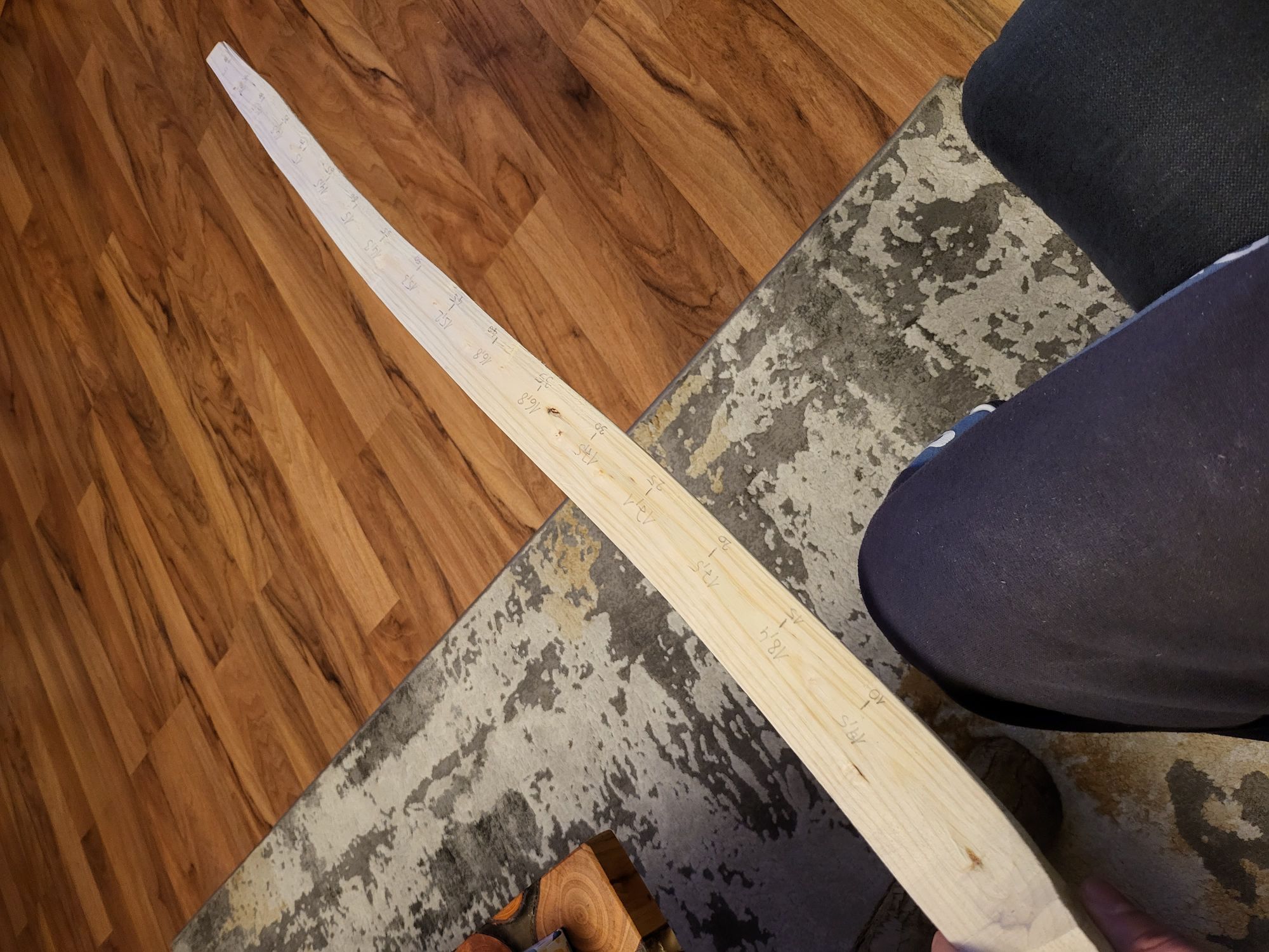Im Anschluss hab ich die Stärke der Wurfarme reduziert und dann alle 5cm vom Griff die Dicke gemessen und notiert.