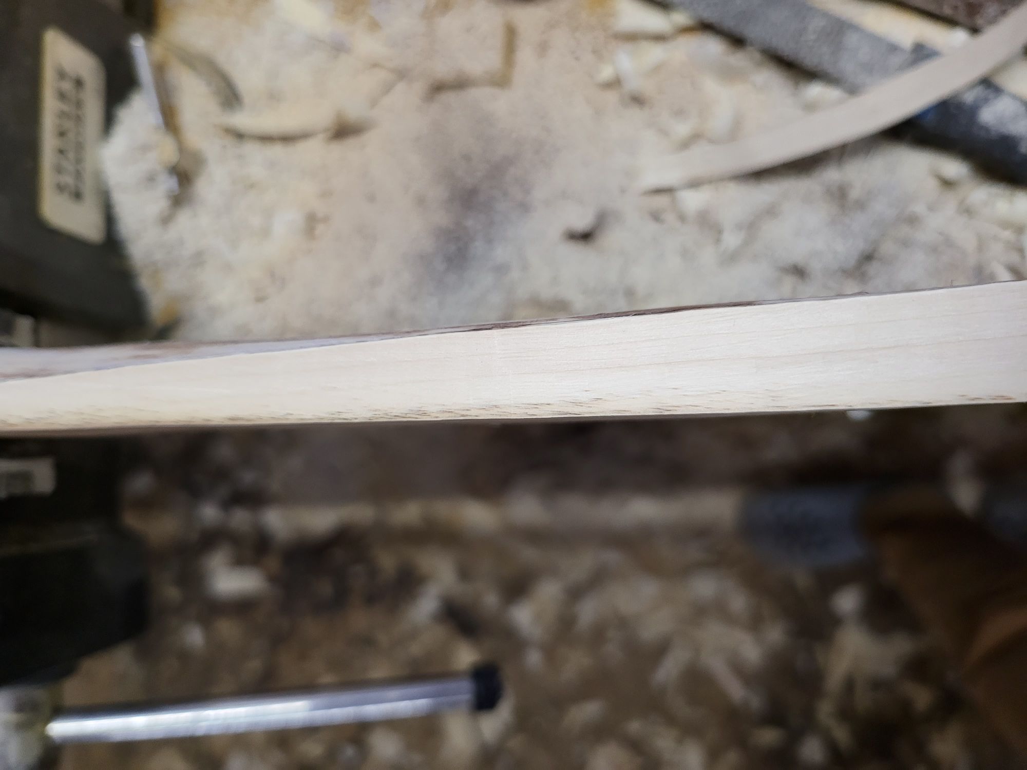 Als nächstes versuchte ich die Wurfarme halbwegs auf einander anzupassen und einen gleichmäßigen Taper zu erzeugen (fast ausschließlich mit dem Reifmesser).