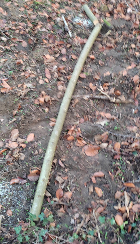 Ein dicker Ast wollte ich in den Griff nehmen, also auf 1,80m gekürzt, der Ast: