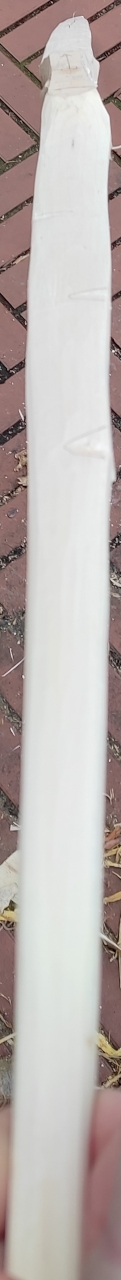 Erstmal 23cm abschneiden, da war so ein doofer Knick: Dann über Rücken gepeilt, schön gerade: Dann runtergearbeitet Hat ziemlich Reflex Dicke und Breite noch weit über Endmaß: Trocknet jetzt erstmal so, nicht eingespannt. Mal gucken was daraus später wird.