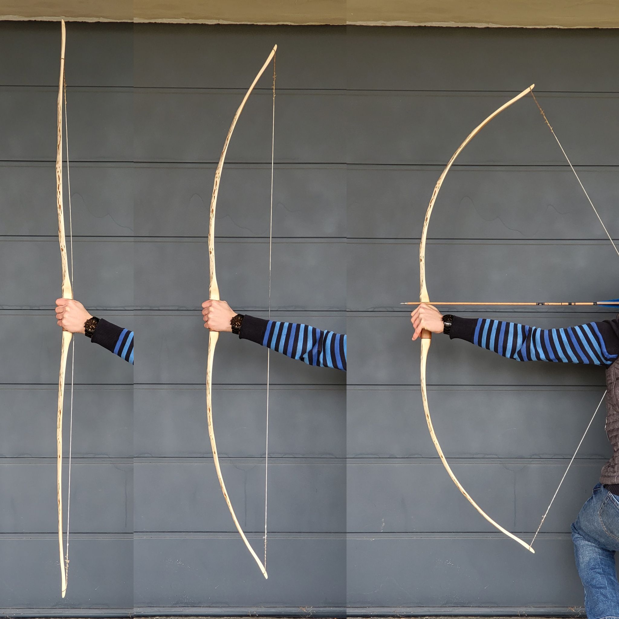 Gezeigt werden sollen Fotos vom ungespannten Bogen, auf Standhöhe, Vorderansicht und Vollauszug und mind. ein Detailfoto, also Nahaufnahme! Nicht der arrowpass aus 1m Entfernung
