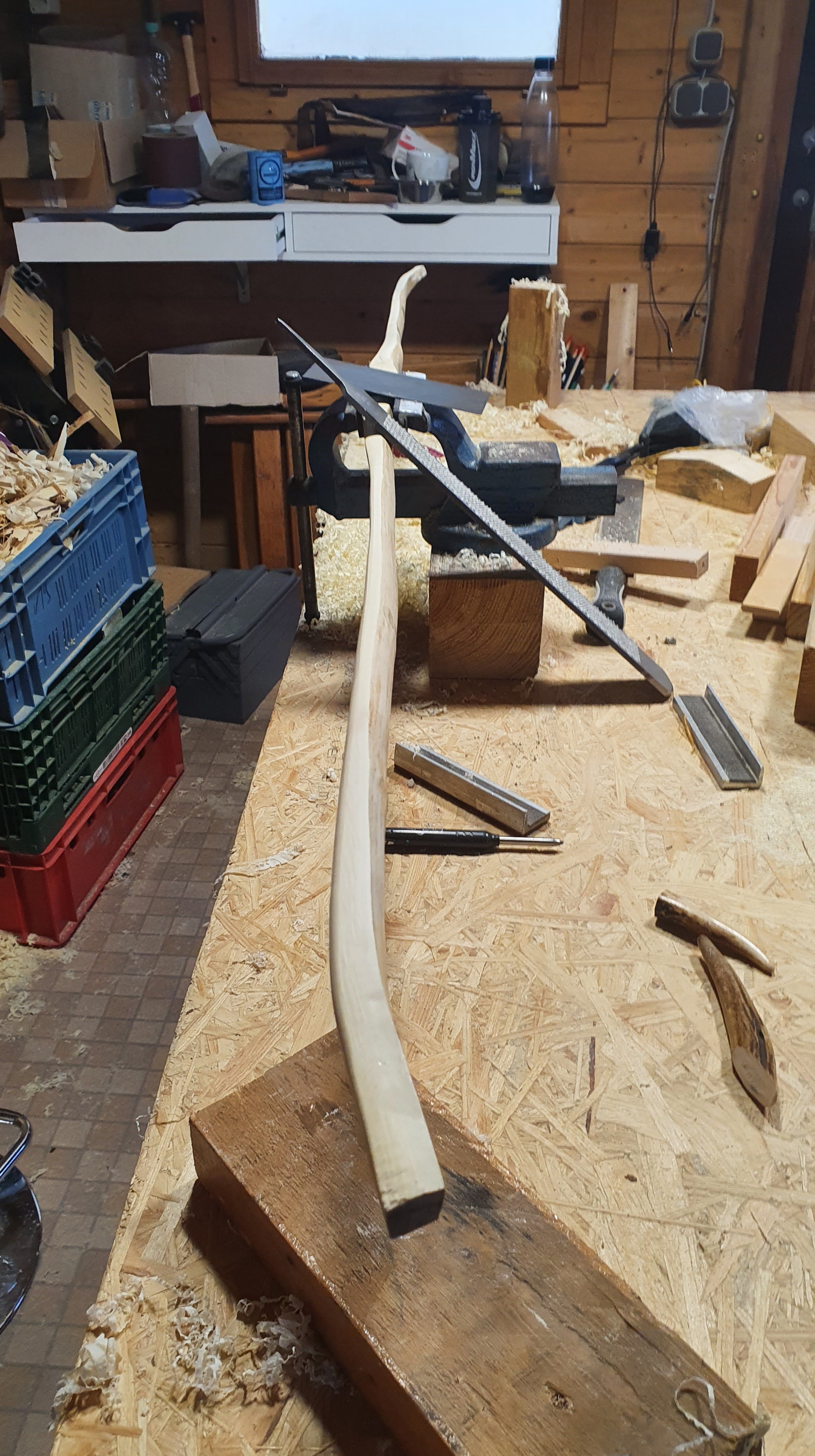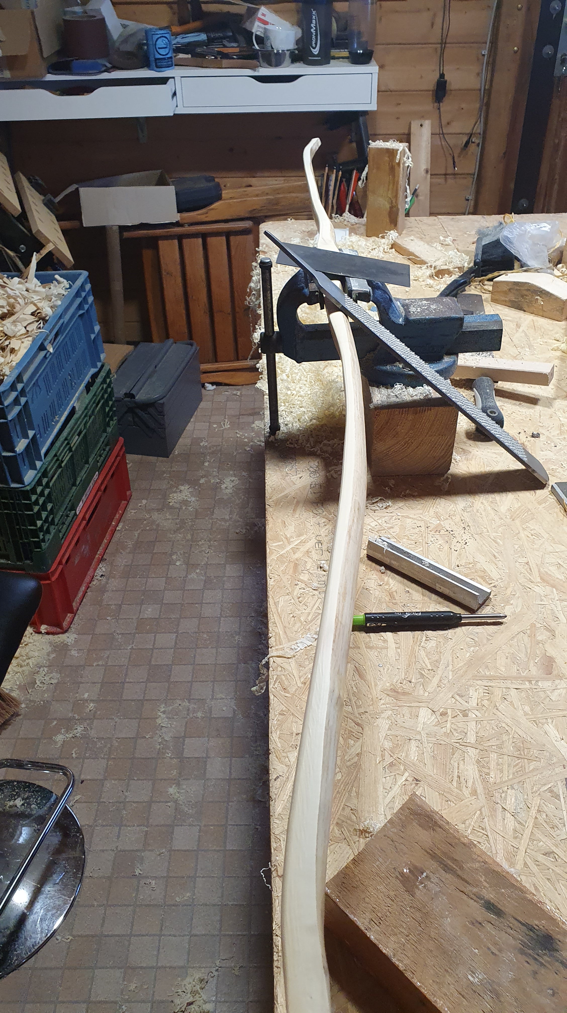 Das war es für Tag 1. Ich habe ihn gute 2 Wochen trocknen lassen. Verwendetes Werkzeug...Ziehmesser und Maßband...Leim