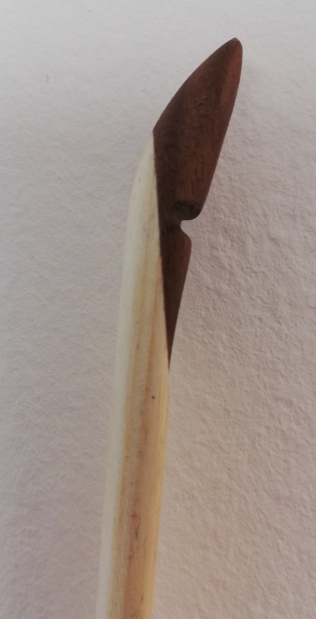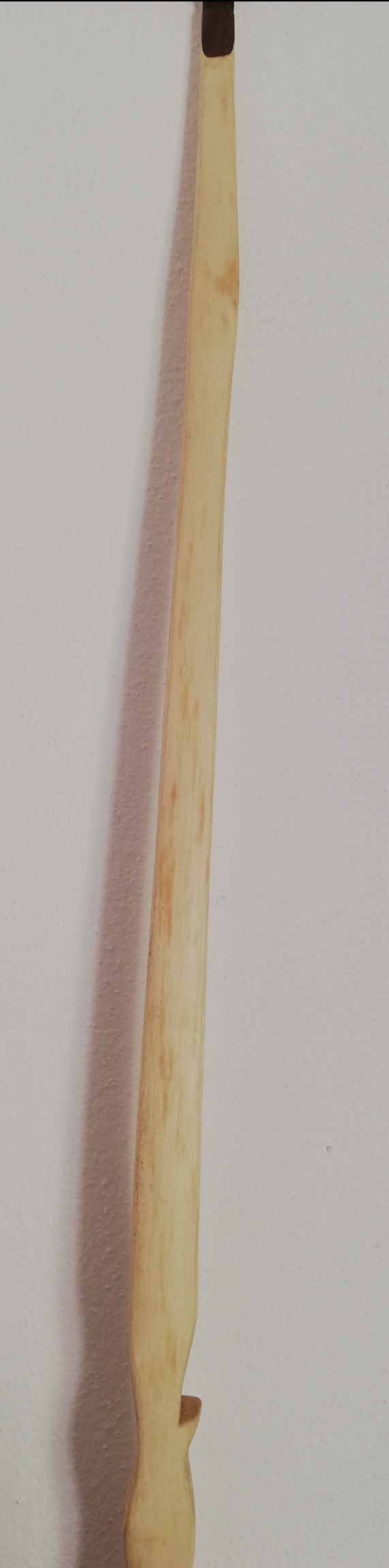 Aus den unteren Wurfarm des Eschenstave der für mich nicht brauchbar war hab ich für meinen Sohn einen schicke Flitzer geschnitzt. Somit ist zumindest noch ein kleiner Teil vom Sapling verwertet worden.
