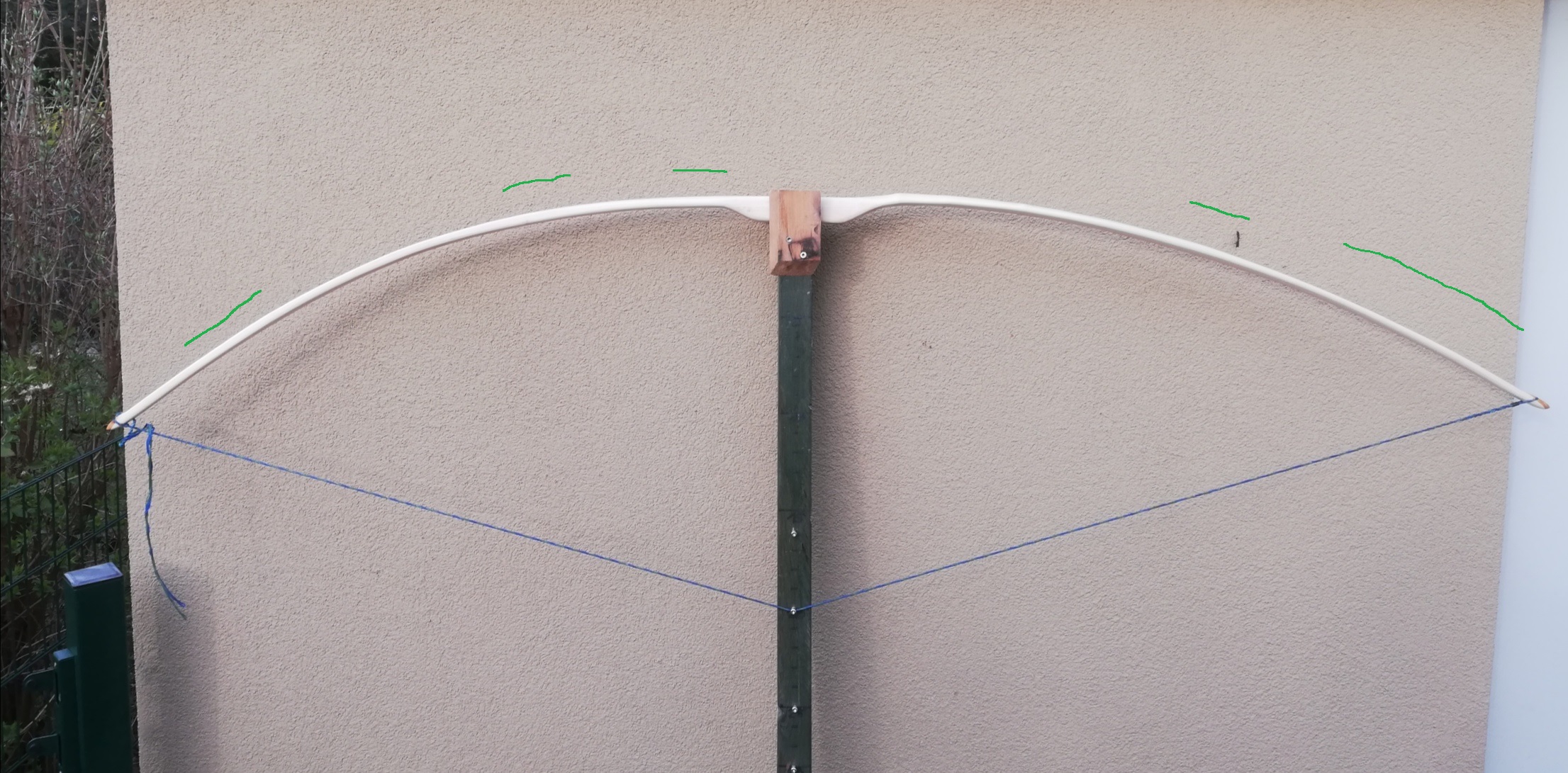 Bei der Wahl des Holzes ging es einzig und allein um die Optik. Materialeigenschaften waren hier komplett hinten angestellt. Wenn Ihr meint das funktioniert nicht, ok! Werde ich beim einkürzen der Wurfarme und neugestalten der Tipps berücksichtigen.