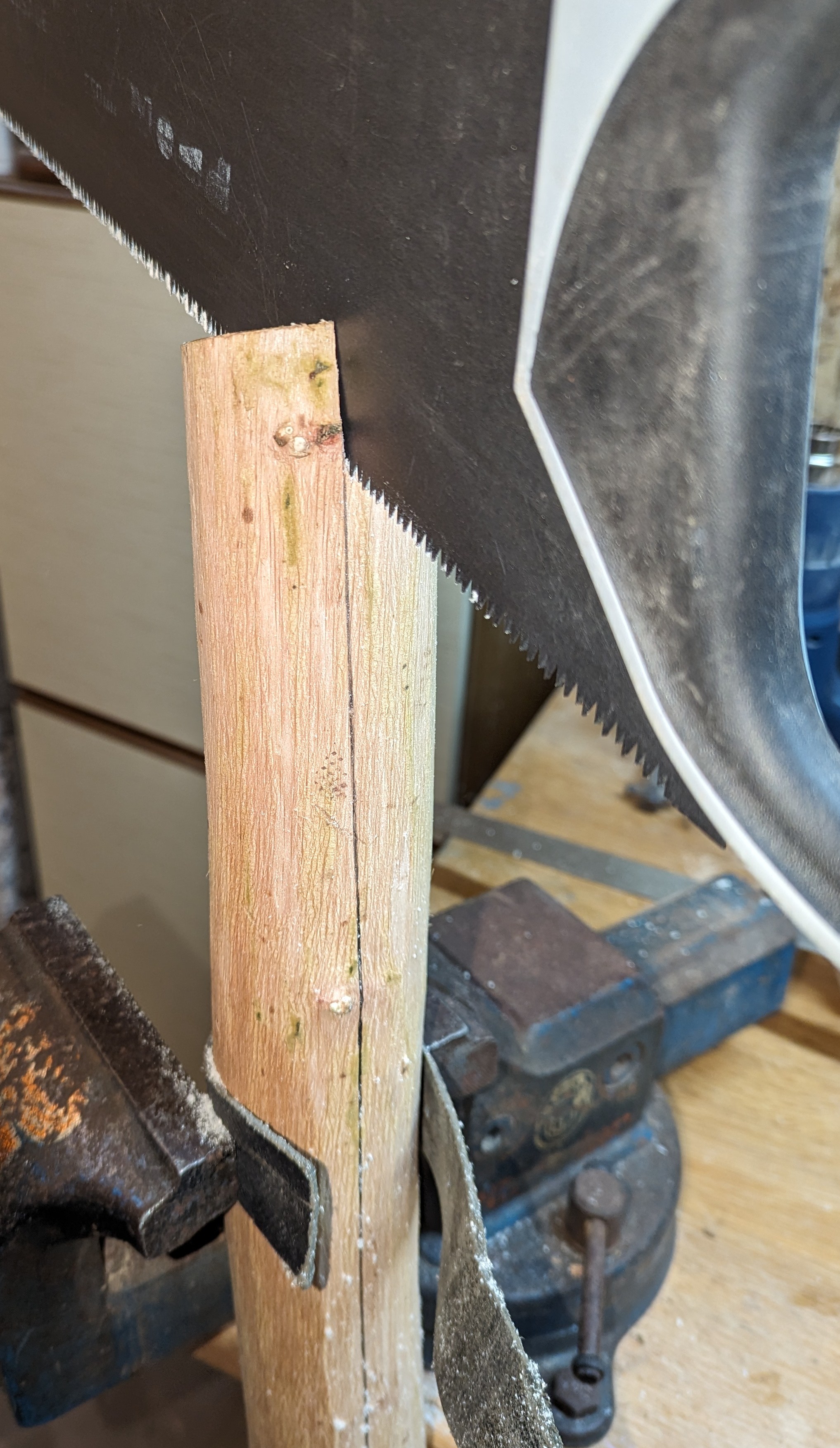 Vom Saplingbowturnier hab ich noch ein 50cm Haselstück über. Also dachte ich mir das ich aus dem Stück nochmal einen Köcher mache um die Zeit des trocknens der Saplinge zu überbrücken.