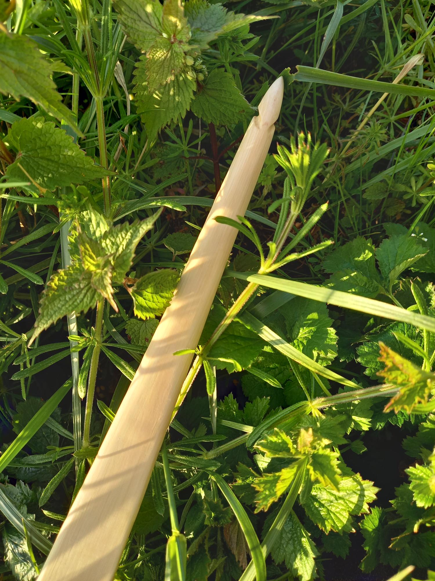 Der Rohling war ein Hasel mit einer ursprünglichen Dicke von 9cm den ich dann gespalten/halbiert und getrocknet habe.