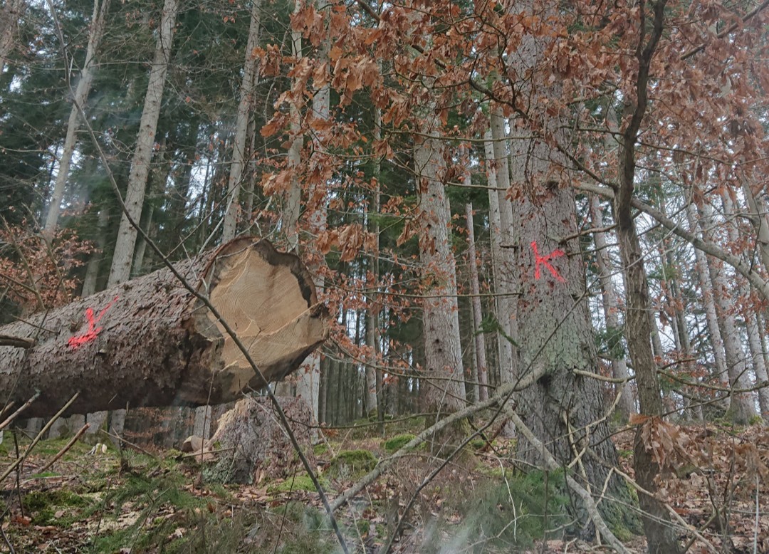 Keine Ahnung warum dieser Käferholz Baum liegen und der andere stehen gelassen wurde... Vllt Streit zwischen Wald Besitzer und Forst BW...