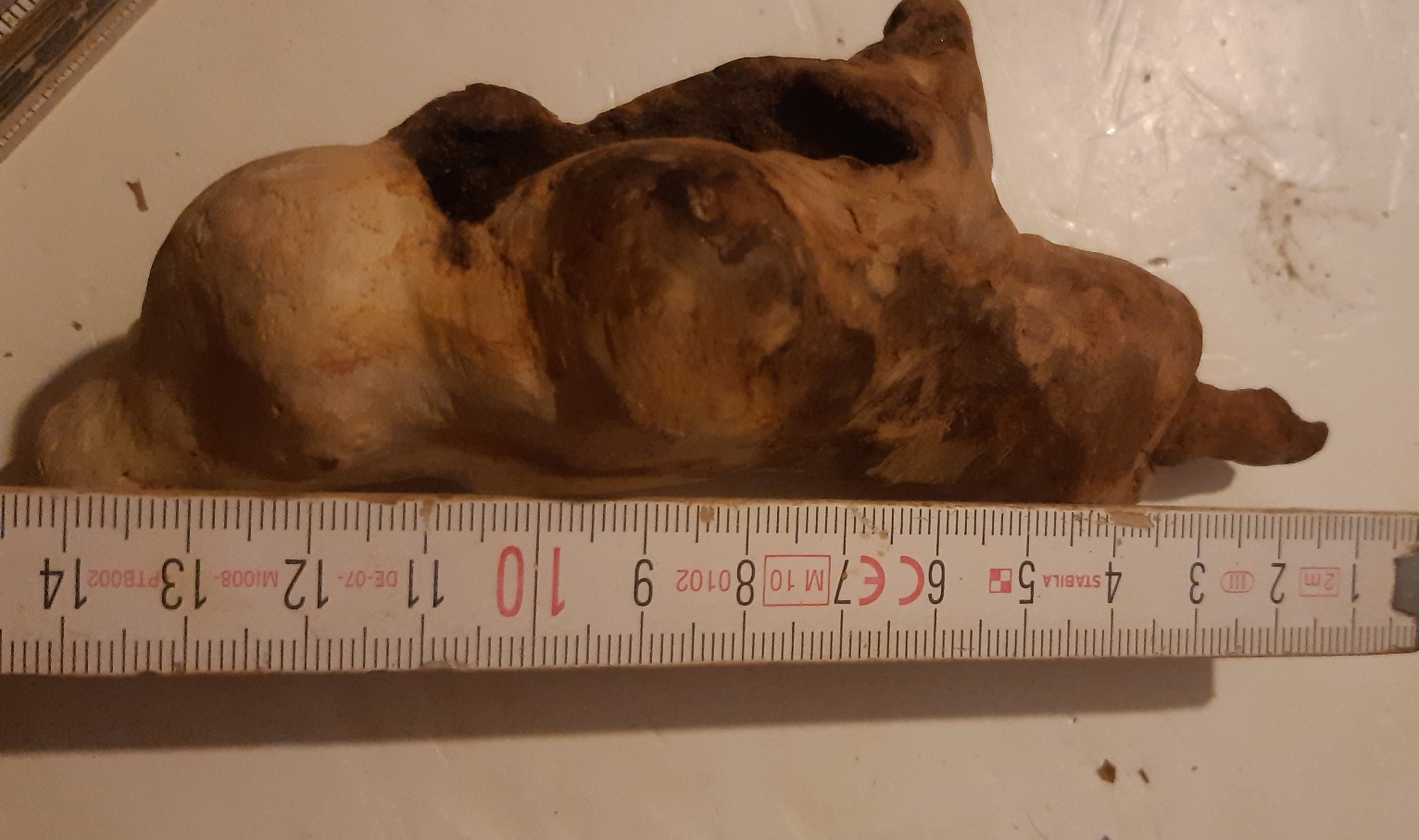 Das verwendete Werkzeug: Beim Hund bespaßen, noch an der Wurzel einer Buche ein Hexenei gefunden. Vielleicht bringe ich das auch noch ein? Werde es morgen mal kochen und Schälen.