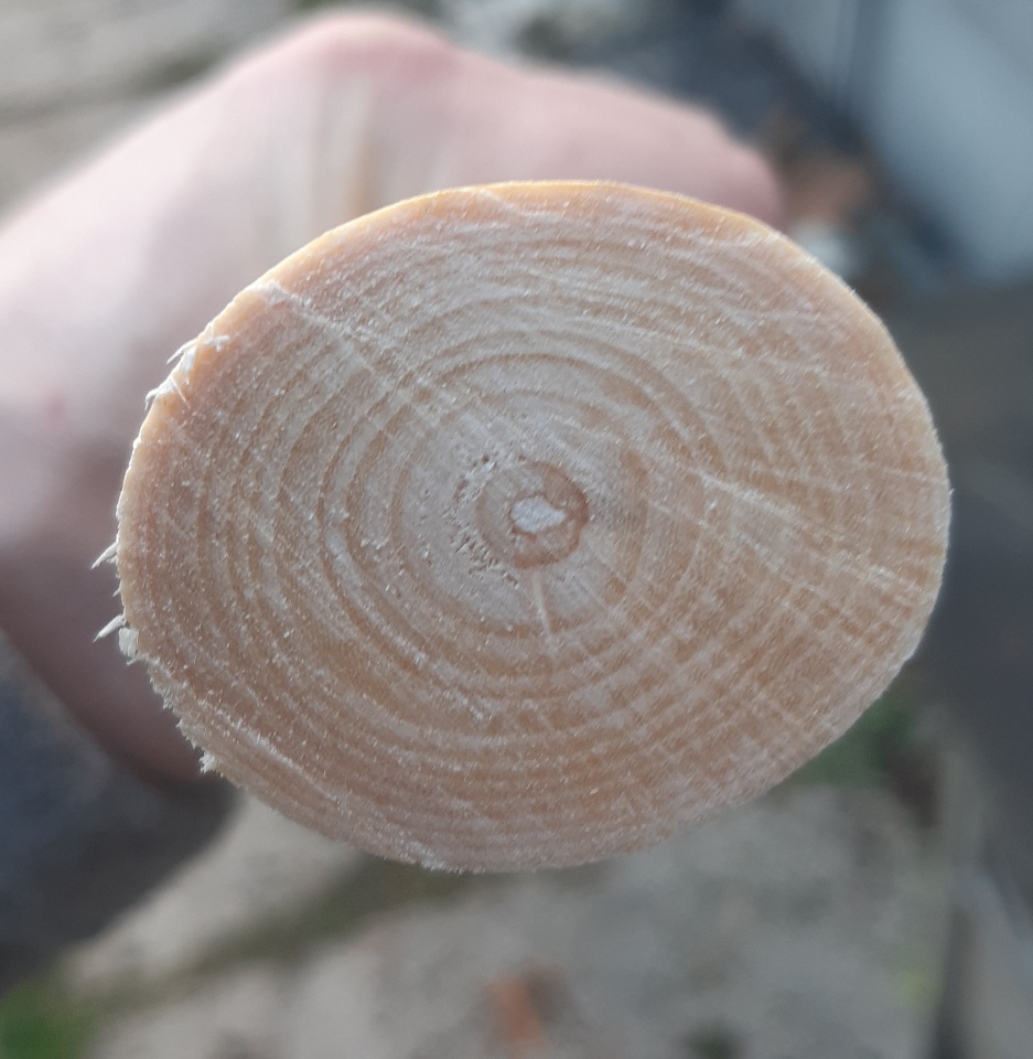 So hab die Ulme mal etwas zerstückelt. Jetzt habe ich eine Lange Stange mit über 2m und zwei spaltlinge 1m und zwei noch etwas kürzer. Ursprünglich wollte ich mal zwei Jahresringe runternehmen aber kaum ca. 50cm abgeschnitten und schon sind die Jahresringe dünner und es scheint nicht wirklich Sinn zu machen da irgendwas abzunehmen