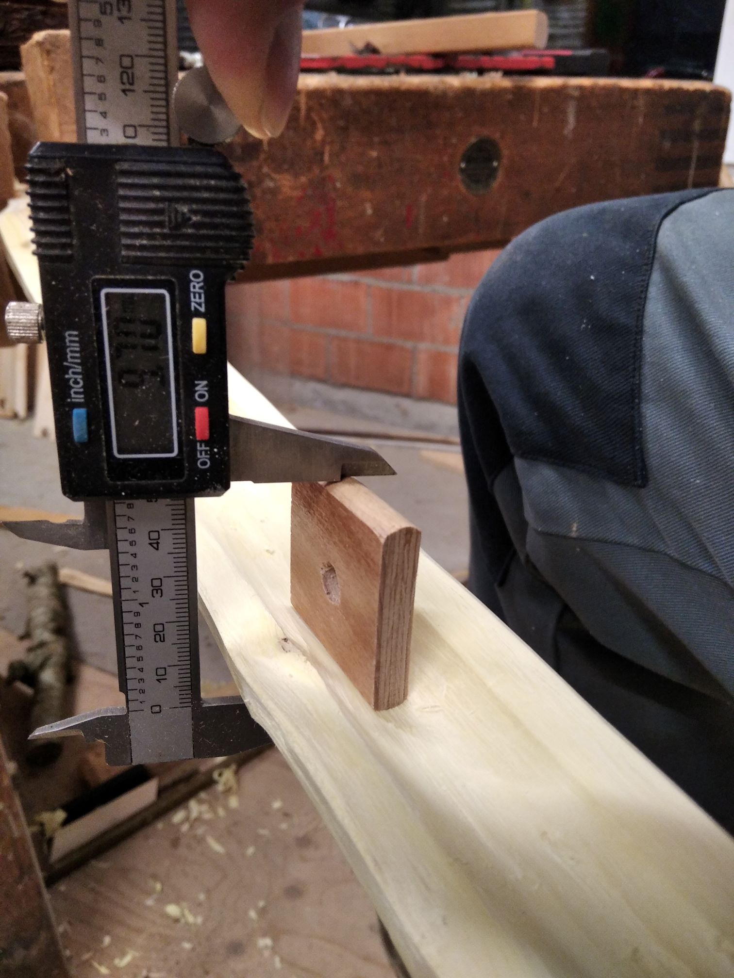 Der digitale Messschieber eignet sich hervorragend, um die Wandstärke zu messen. Zum Glück gibt's die Taste zum nullen... Und so sieht der hohle Wurfarm nun aus: In der Mitte der Kehle ist der Wurfarm von 8 mm bis 6 mm dick.