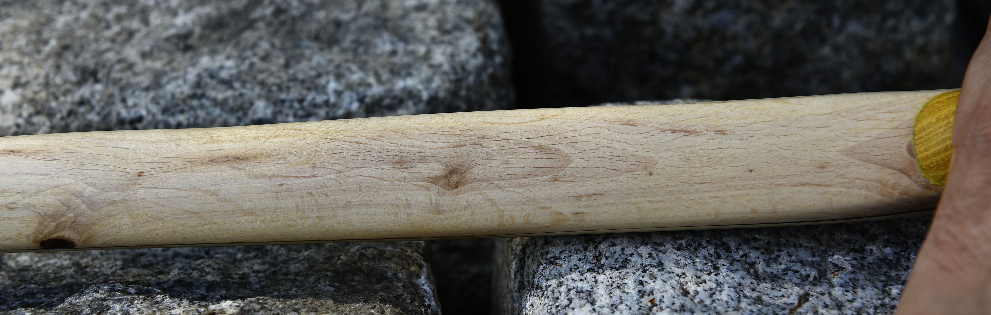 Hasel am Rücken, in der Mitte Ahorn im Griff überlappend und am Bauch Hainbuche.