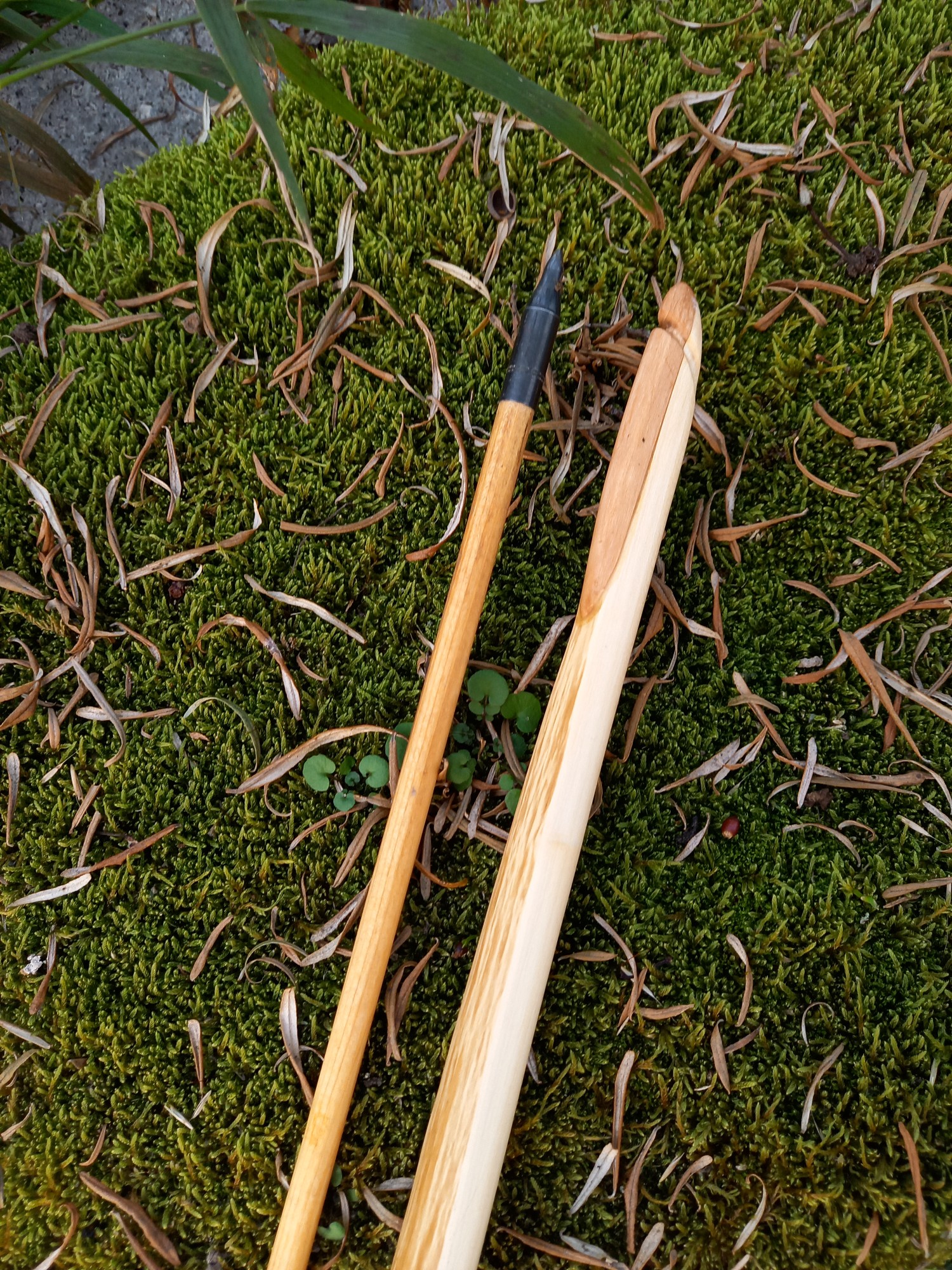 Das Problem war, dass die Sehne ausserhalb des Griffbereichs lag und es mir den Rohling in der Tillphase immer wieder fast um die Ohren gehauen hat. Mehrmals hab ich den Rohling im Griffbereich durch stundenlanges Dämpfen und zurechtbiegen korrigiert.