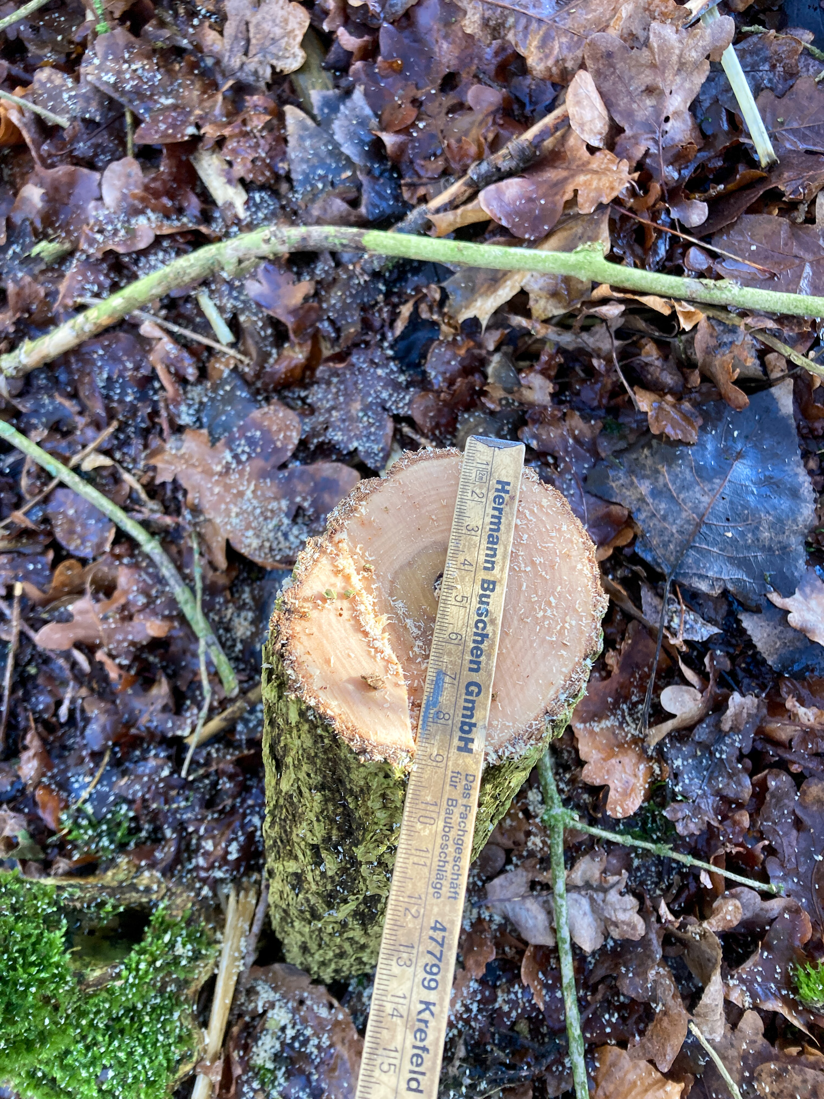 Der Holler-Sap hat Drehwuchs, aber wie Chirurg schon geschrieben hat, das ist der Bandsäge egal >:) Denke 40 Pfund sollte der packen und dann fällt auch hoffentlich der gammlige Kern weg.