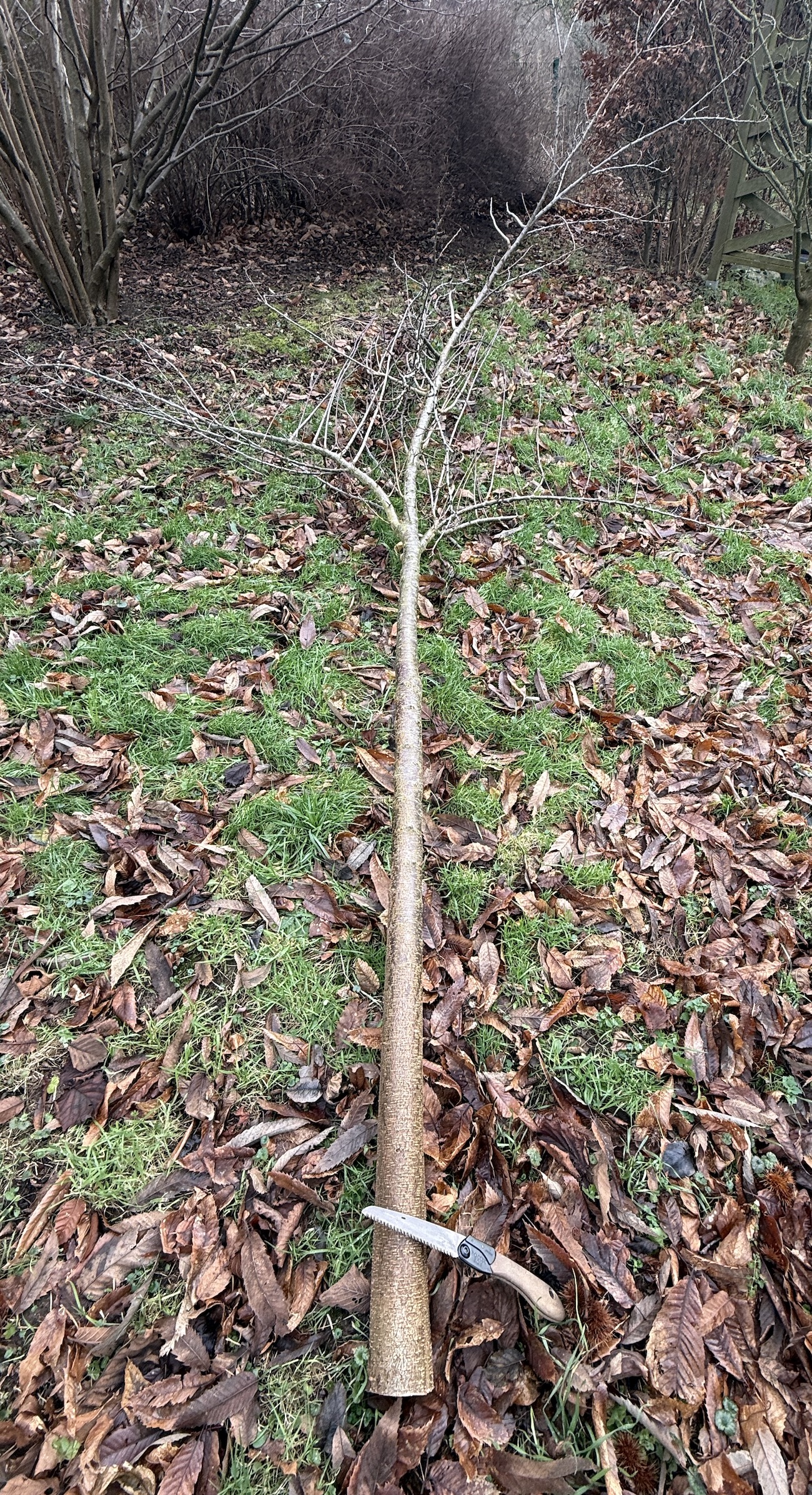 Verwendete Werkzeuge: Klappsäge, stumpfes Messer zum entrinden.