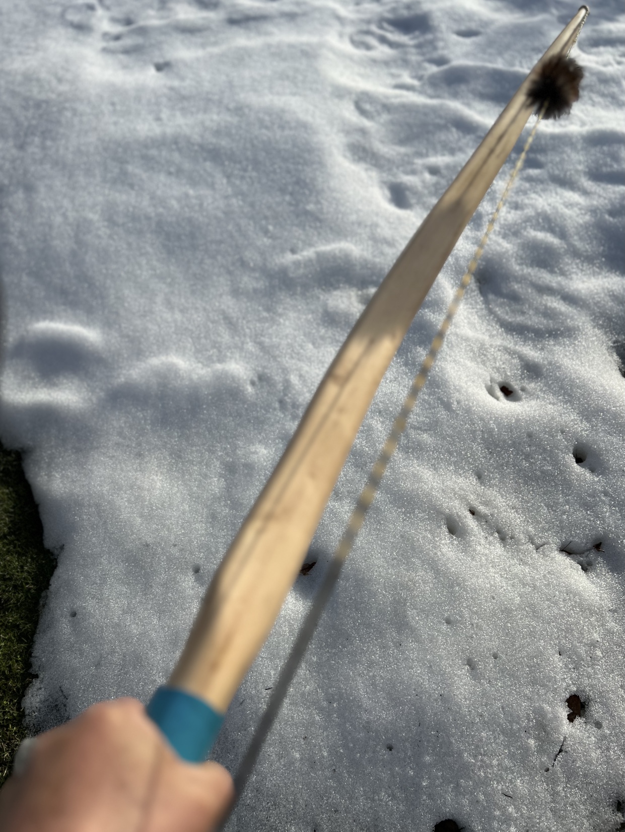 Schöner Bogen mit sehr schlanken Tips. Das Zuggewicht liegt ja gesundheitsgefährdende 30# über deinem üblichen! Den wirst hoffentlich nicht allzu oft schiessen. Lg Karl