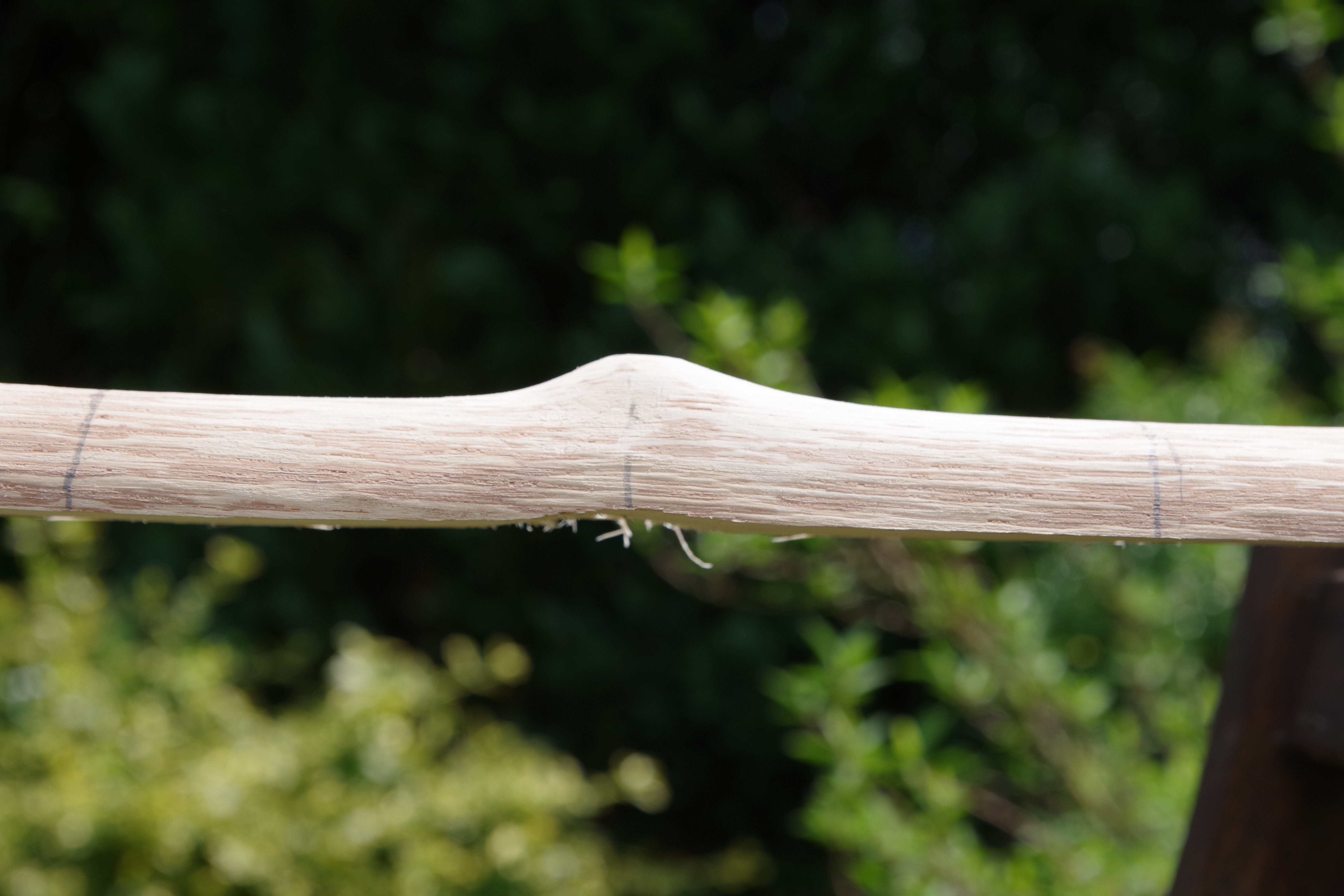 Finde erstmal die Idee den relativ breit zu machen eigentlich auch für schwächere Bögen gut. Werden am Ende vermutlich keine 45mm Breite bleiben können, sonst kommst du wahrscheinlich nur mit Mühe auf 25lbs runter, aber das Zuggewicht wird generell eher über die Dicke reduziert und du hast den Bogen ja schon auf Flachbogen angelegt. Breit und flach ist da eigentlich unabhängig vom finalen Zuggewicht die normale Herangehensweise, gerade bei Hölzern wie Hasel.