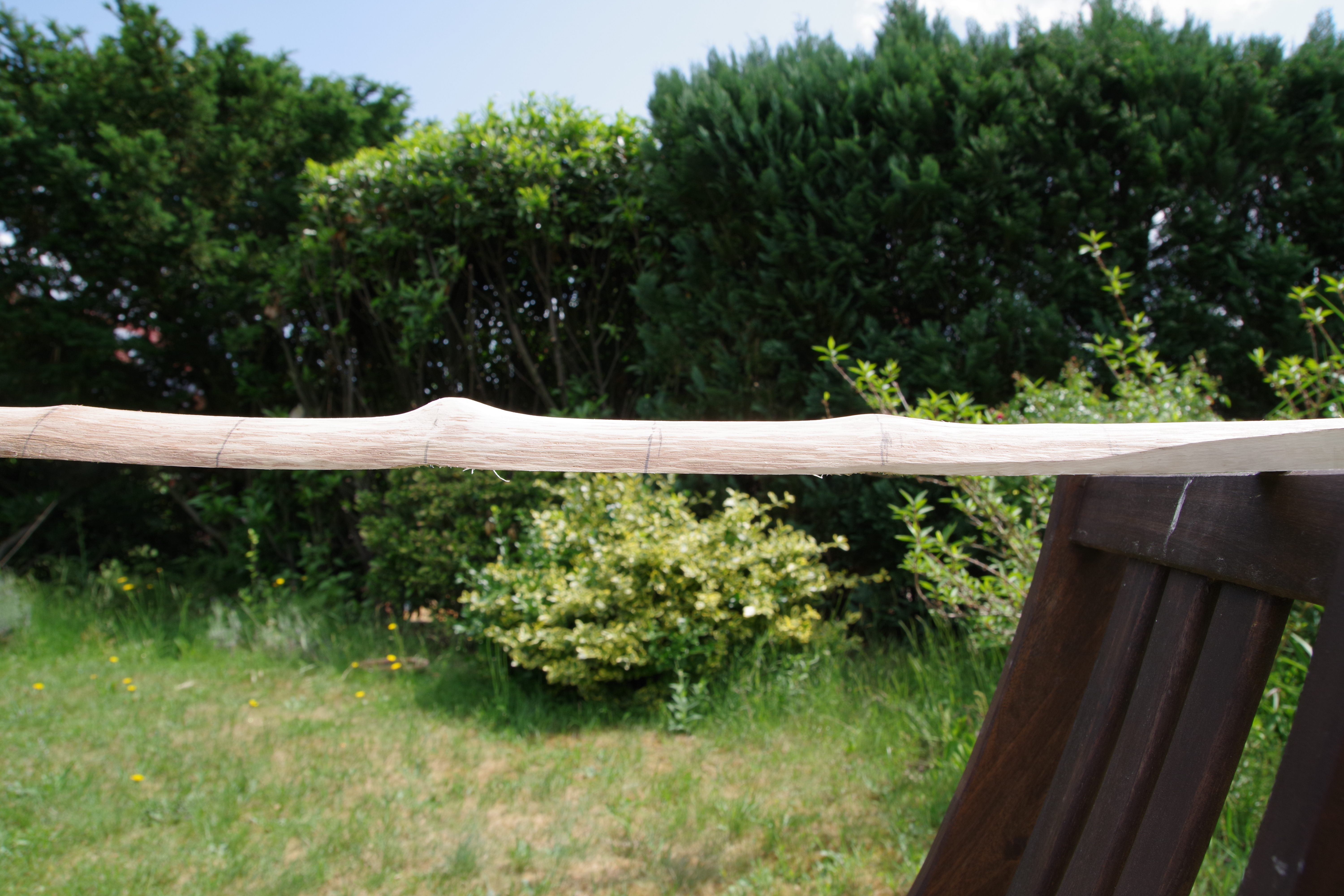 Umgekehrt: Selbst wenn man so eine Stelle steifer lassen will, heißt das nicht, dass man den Knubbel am Bauch gar nicht durch Abtrag ausgleichen darf. Es reicht dann dort etwas mehr Material stehen zu haben, als im Rest des Wurfarms. Je nachdem wie problematisch man die Stelle einschätzt sind es ein paar Hiebe mit einer Feile und ein paar Züge mit einer Ziehklinge, die den Unterschied zwischen "steifer lassen" und "stärker mitbiegen" ausmachen.