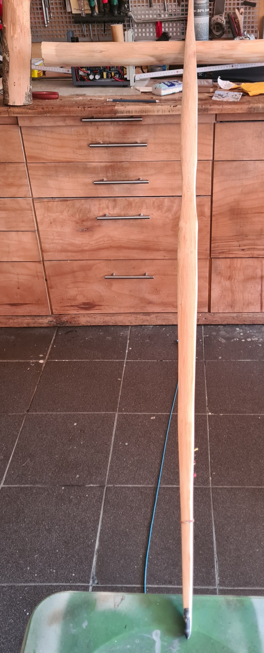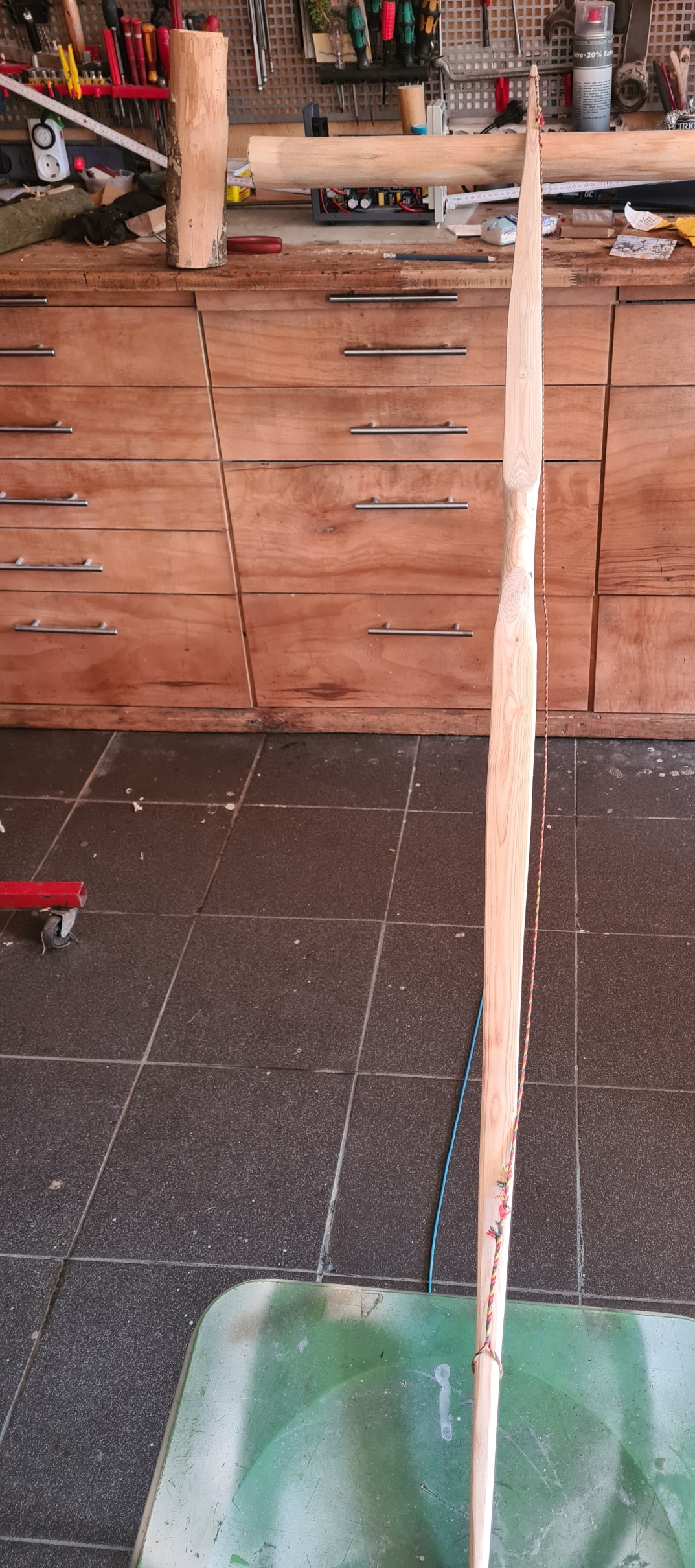 Beim Bauch tämpern hat sich das Holz ziemlich Quer gestellt. Ich wollte einen leichten Reflex einarbeiten und hab den Bogen dementspechent eingespannt, Pustekuchen, keine Reaktion.