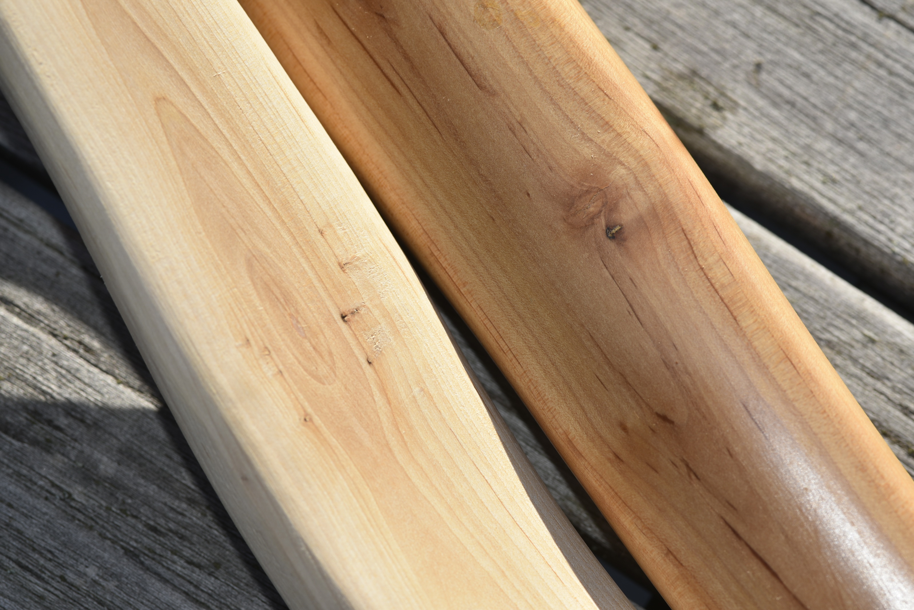 links unbekanntes Holz, rechts Weissdorn (der Bogen ist allerdings schon einige Jahre alt)