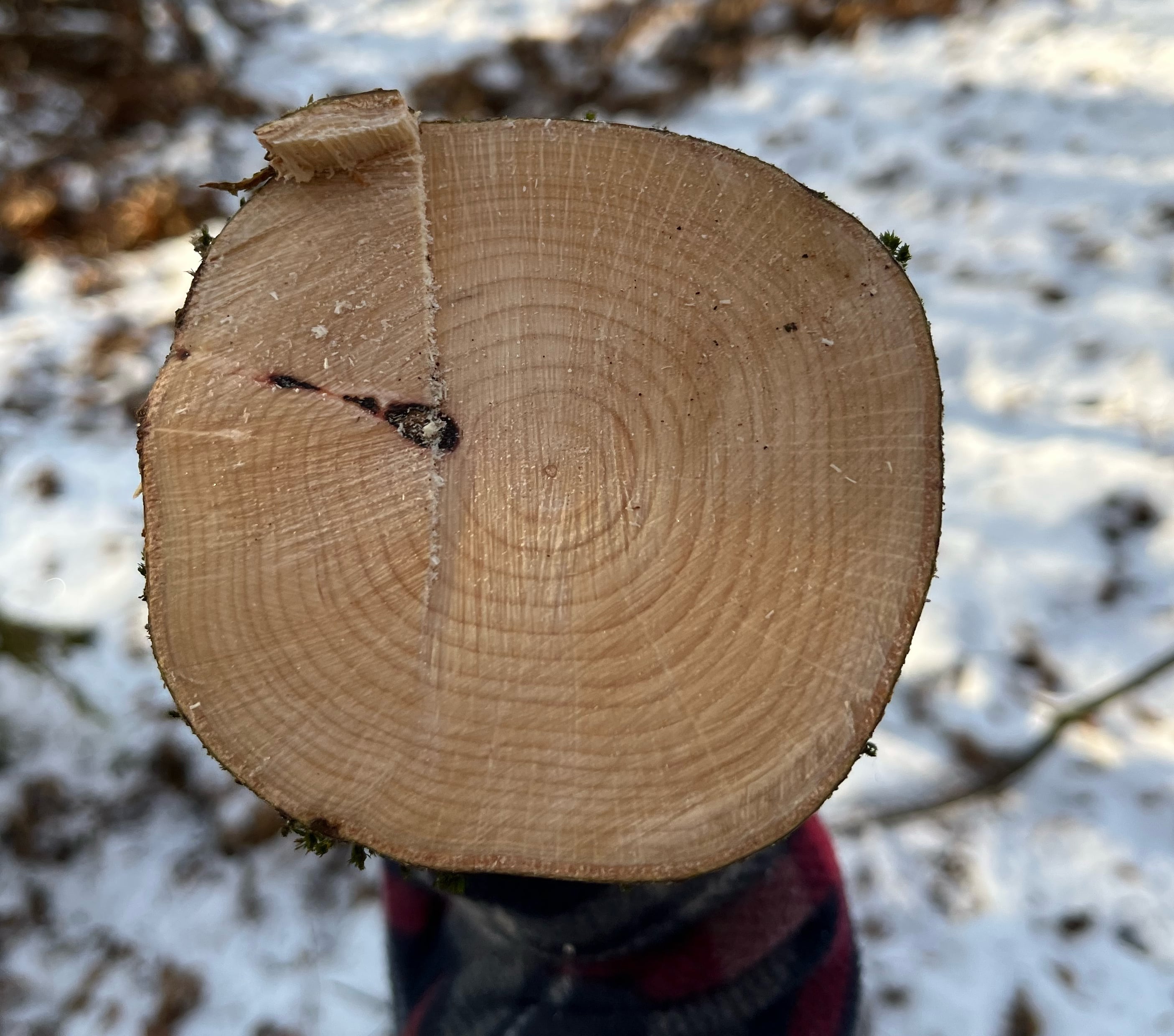 Die äußeren drei Ringe sind mies dünn, aber das ist Hasel, denk ich mir. Wär der Erste, der mir übern Rücken bricht. Ich bin ja sowieso Verfechter der Theorie, dass bei druckschwachen und zugstarken Hölzern dünne Rückenringe besser sind, also rede ich mir mal ein, das ist super so, um Knitteritis zu vermeiden
