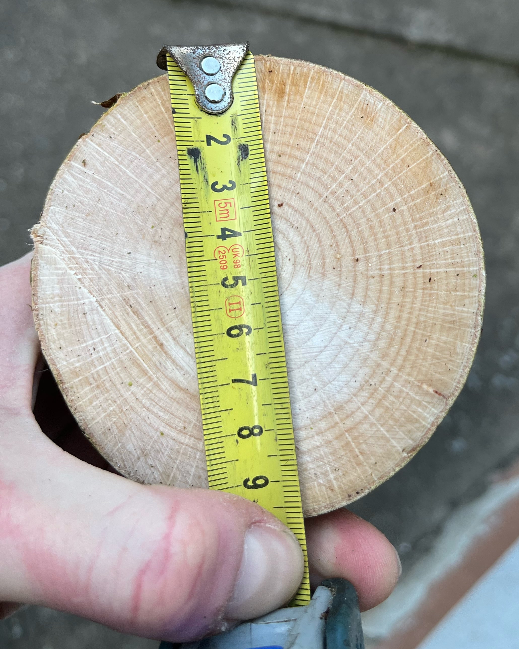 Die äußeren drei Ringe sind mies dünn, aber das ist Hasel, denk ich mir. Wär der Erste, der mir übern Rücken bricht. Ich bin ja sowieso Verfechter der Theorie, dass bei druckschwachen und zugstarken Hölzern dünne Rückenringe besser sind, also rede ich mir mal ein, das ist super so, um Knitteritis zu vermeiden :)