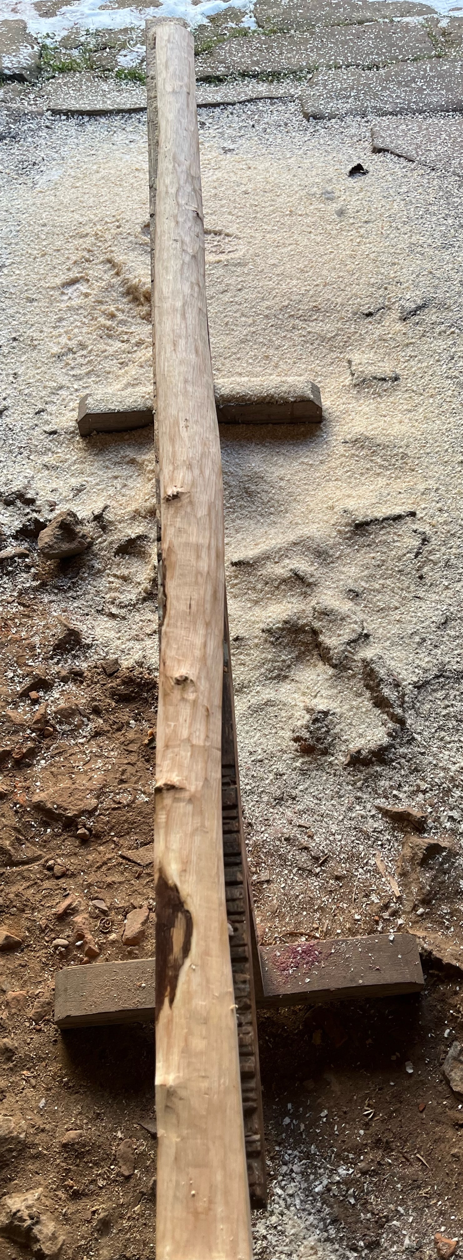 Hab sie dann noch in Kantelform gebracht und Rinde und Bast runtergezogen.